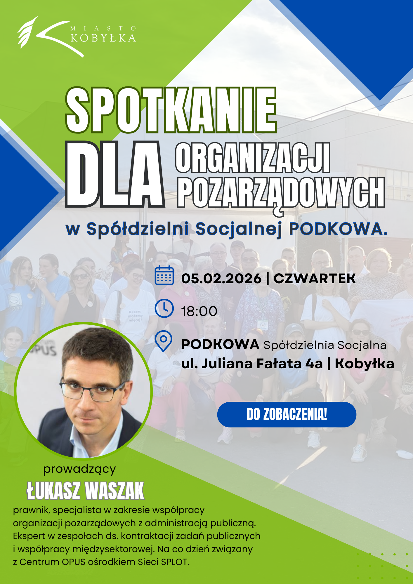 Zapraszamy wszystkie organizacje pozarządowe z naszego miasta na wspólne spotkanie, które odbędzie się 5 lutego o godzinie 18:00 w Spółdzielni Socjalnej PODKOWA.. Spotkanie poprowadzi p. Łukasz Waszak. Do zobaczenia!