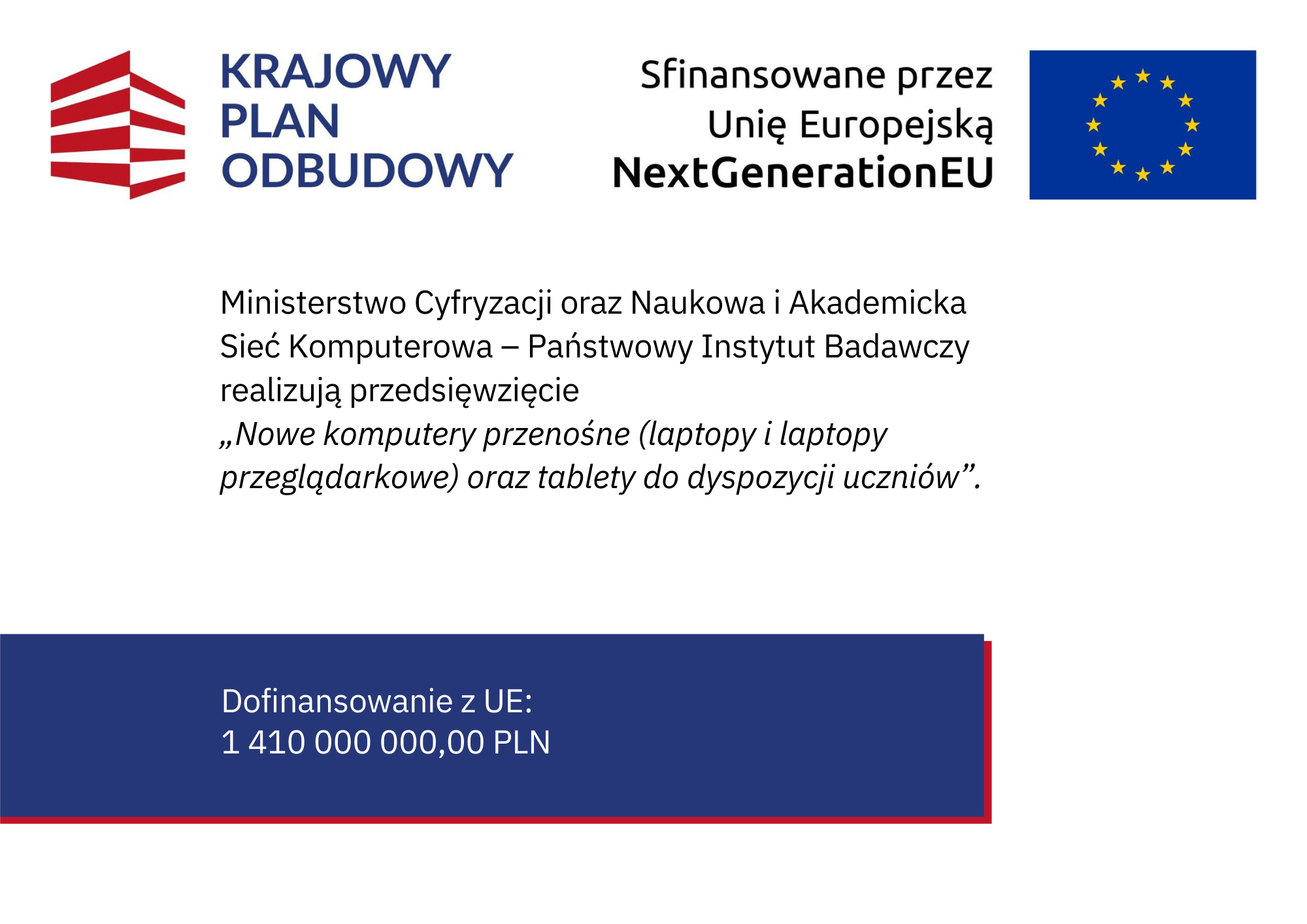 Zadanie: „Wdrażanie inwestycji C2.1.2 Wyrównanie poziomu wyposażenia szkół w przenośne urządzenia multimedialne – inwestycje związane ze spełnieniem